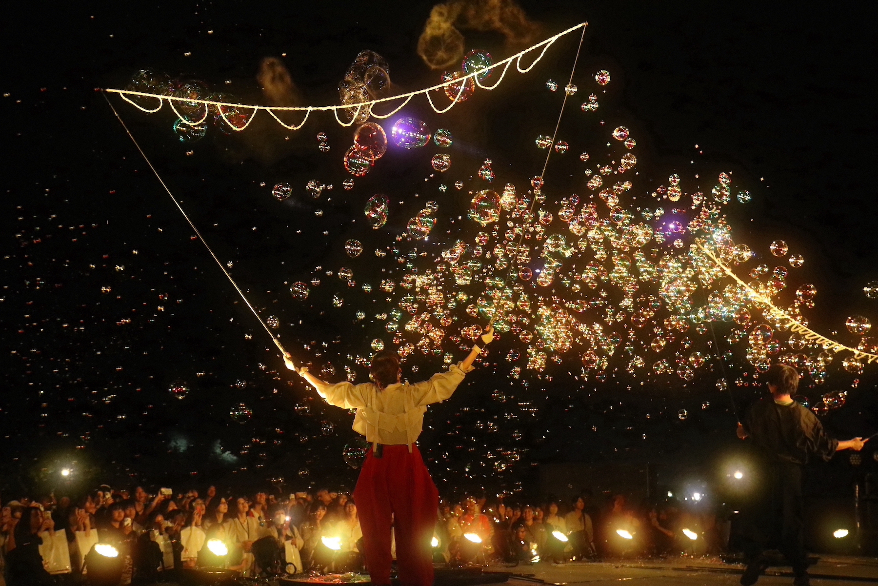 悔しさを教訓に、次回に向けて改善点を明確にし、計画を練り直そう。そう気持ちを新たにした中、大学の経営企画室から『愛知学院創立150周年記念イベント』の企画運営の打診をいただきました。しかも『P1グランプリ』を見てくださったということで、いろんな意味で驚きました(笑)。概要を聞くと、10月の平日の夜、日進キャンパスで照明と音楽でシャボン玉を飛ばすショー「ナイトバブル」の開催は決まっていて、そのイベントを盛り上げるステージの企画・運営・出演者の調整などの依頼を受けました。