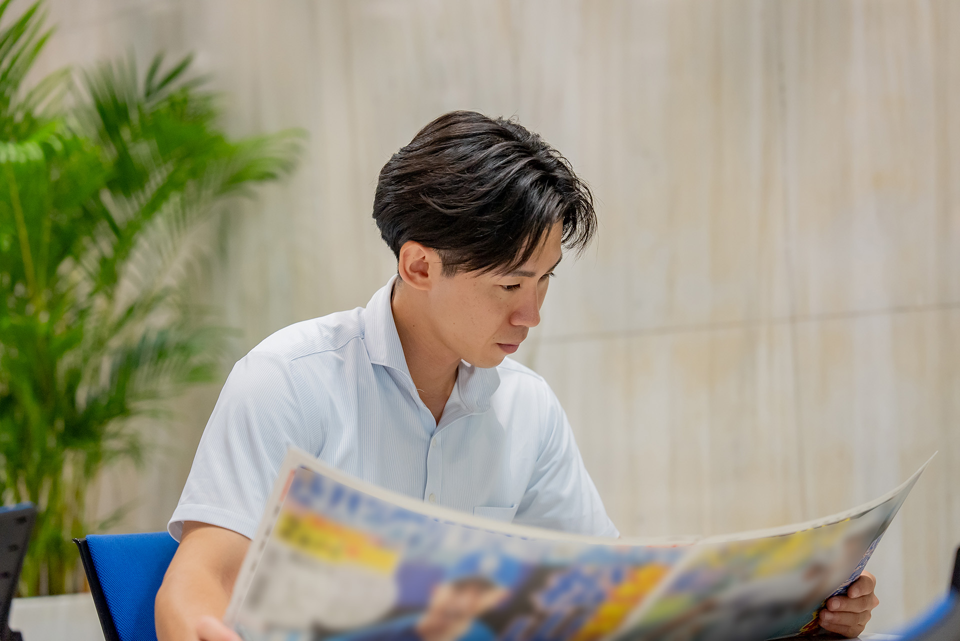 現在は中日新聞社の営業職として、地域の新聞販売店のマネジメントを担当し、新規読者獲得に向けた戦略立案や販促企画を行っています。販売店と協力してキャンペーンやイベントを実施し、世代に合わせた販売方法を工夫することで地域のニーズに応え、課題解決につなげています。読者数は数値化されるので、新規購読が増えることにやりがいを感じます。また、名古屋ウィメンズマラソンやショッピングモールでの展示会などの地域イベントに参加し、読者と直接ふれあえる機会があることもこの仕事の魅力です。読者との交流を通じて笑顔を見られることにもやりがいを感じます。生まれ育った地域に恩返しができていることを実感できる瞬間です。